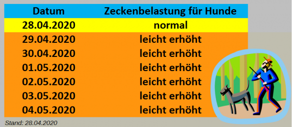 Die praktisch niederschlagsfreie Wetterphase der letzten Wochen neigt sich dem Ende entgegen. Mit ihr auch die bislang sehr überschaubaren Zeckenrisiken im Unterholz.