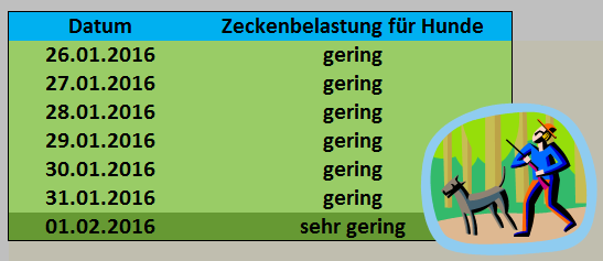 Hundezecken sind noch kein verbreitetes Problem, sondern auf den Süden und Südwesten Deutschlands beschränkt. Mit den sinkenden Temperaturen in der nächsten Woche nehmen die Belastungen wieder ab.