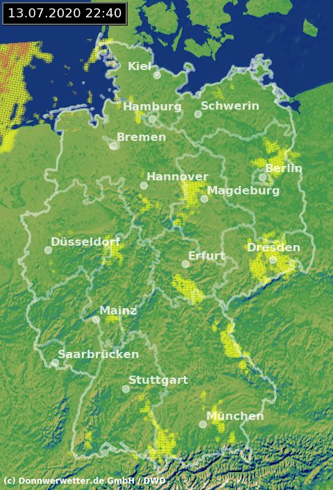Radarbild von Montag, 13.07.2020 um 22.40 Uhr