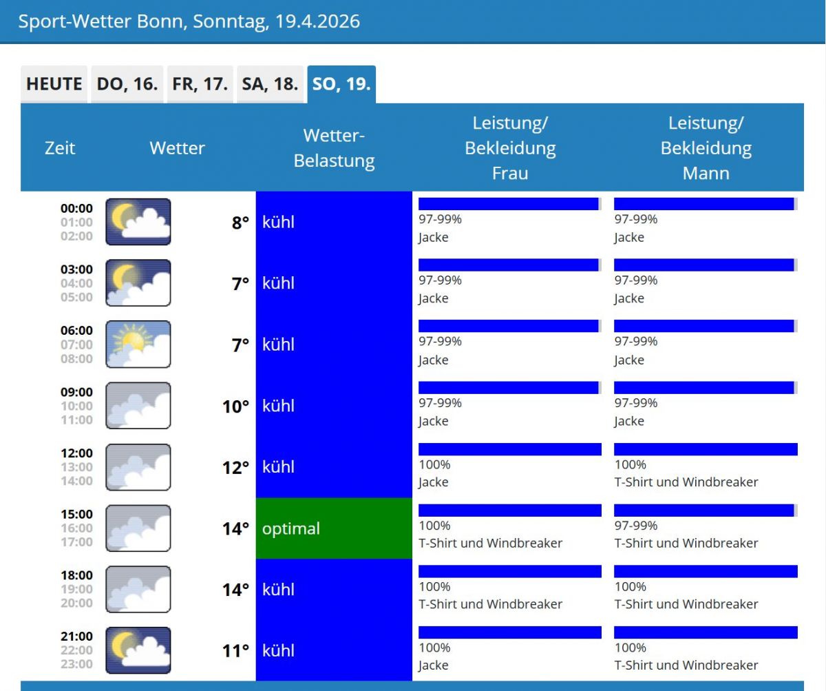Das Sport-Wetter für Bonn für den 19.04.2026: