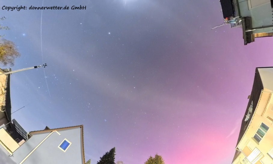 Auch über unseren Wetterbüros in Bonn zeigten sich zarte rötlich-violette Schleier am Himmel – ein außergewöhnliches Naturschauspiel, das sonst meist nur im hohen Norden zu sehen ist!