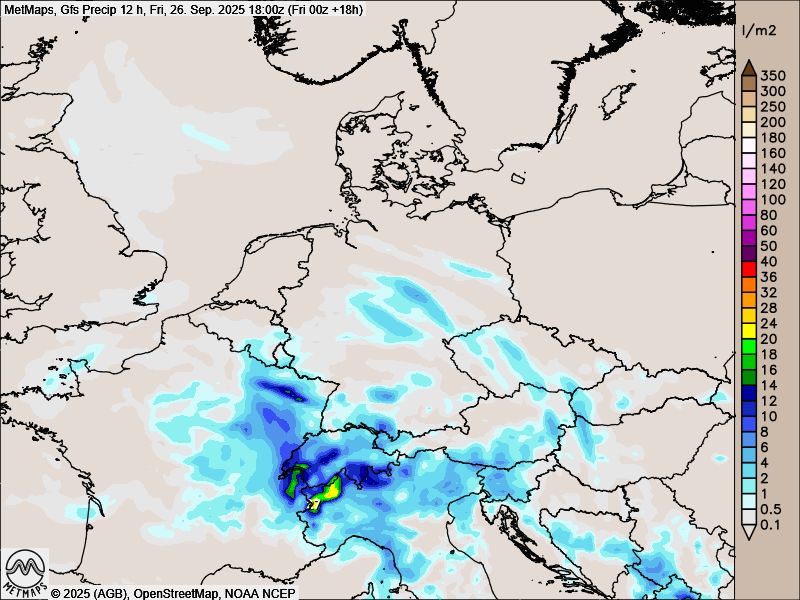 12-Stunden-Regenmengen bis Freitagabend (GFS)