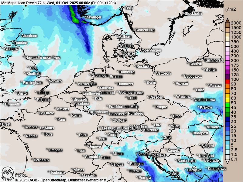72-Stunden-Regenmengen bis Mittwoch (00:00 Uhr) nach Icon