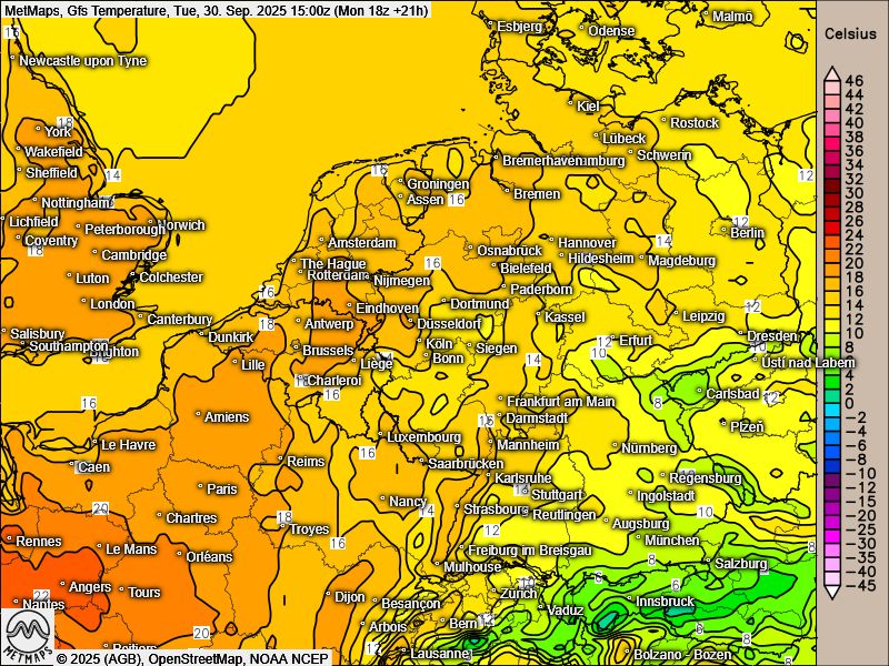 Die GFS-Temperatur- und Wetterkarten für die nächsten Tage: