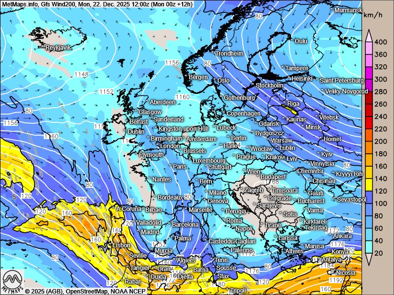 Der Jetstream verläuft in dieser Konstellation weit südlich über Nordafrika – ein für solche Lagen typisches Muster. In Folge kommt es im Mittelmeerraum verbreitet zu kräftigen Niederschlägen, teils als Regen, teils als Schnee. Zudem ist vielerorts mit starkem Wind und hohen Regenmengen zu rechnen.