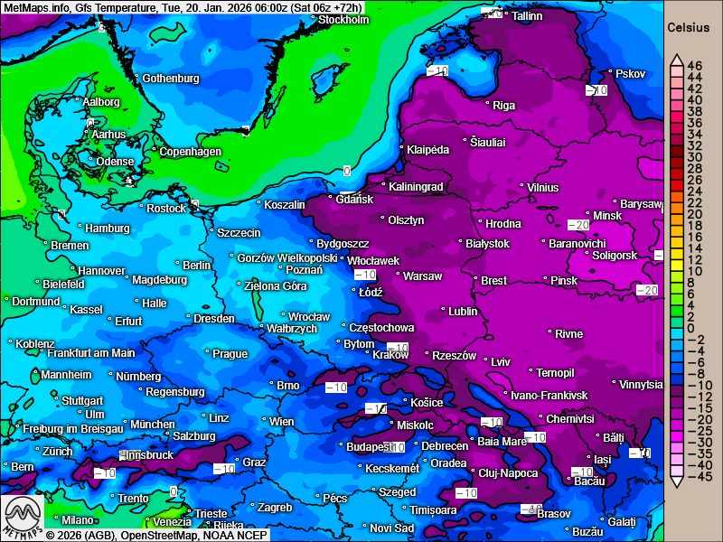 Frühtemperaturen Ukraine 20.01.2026 (06:00 Uhr)