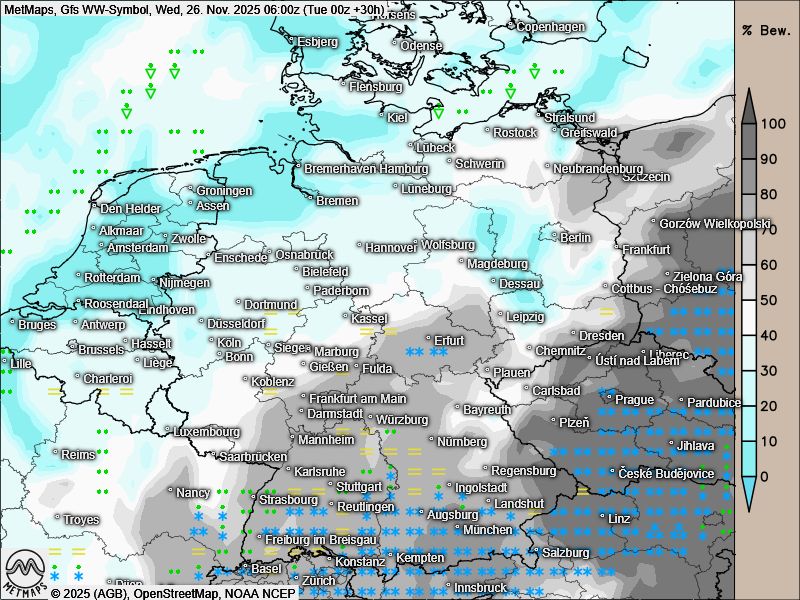 In Tschechien sowie im Alpenraum ist auch heute noch mit Schneefall zu rechnen. Zum Donnerstag hin entspannt sich die Wetterlage allmählich, jedoch gehen die Temperaturen erneut zurück. Bereits am Mittwochmorgen ist in Ostdeutschland stellenweise mit Frost und Reif zu rechnen; auch im Westen sinken die Werte spürbar.