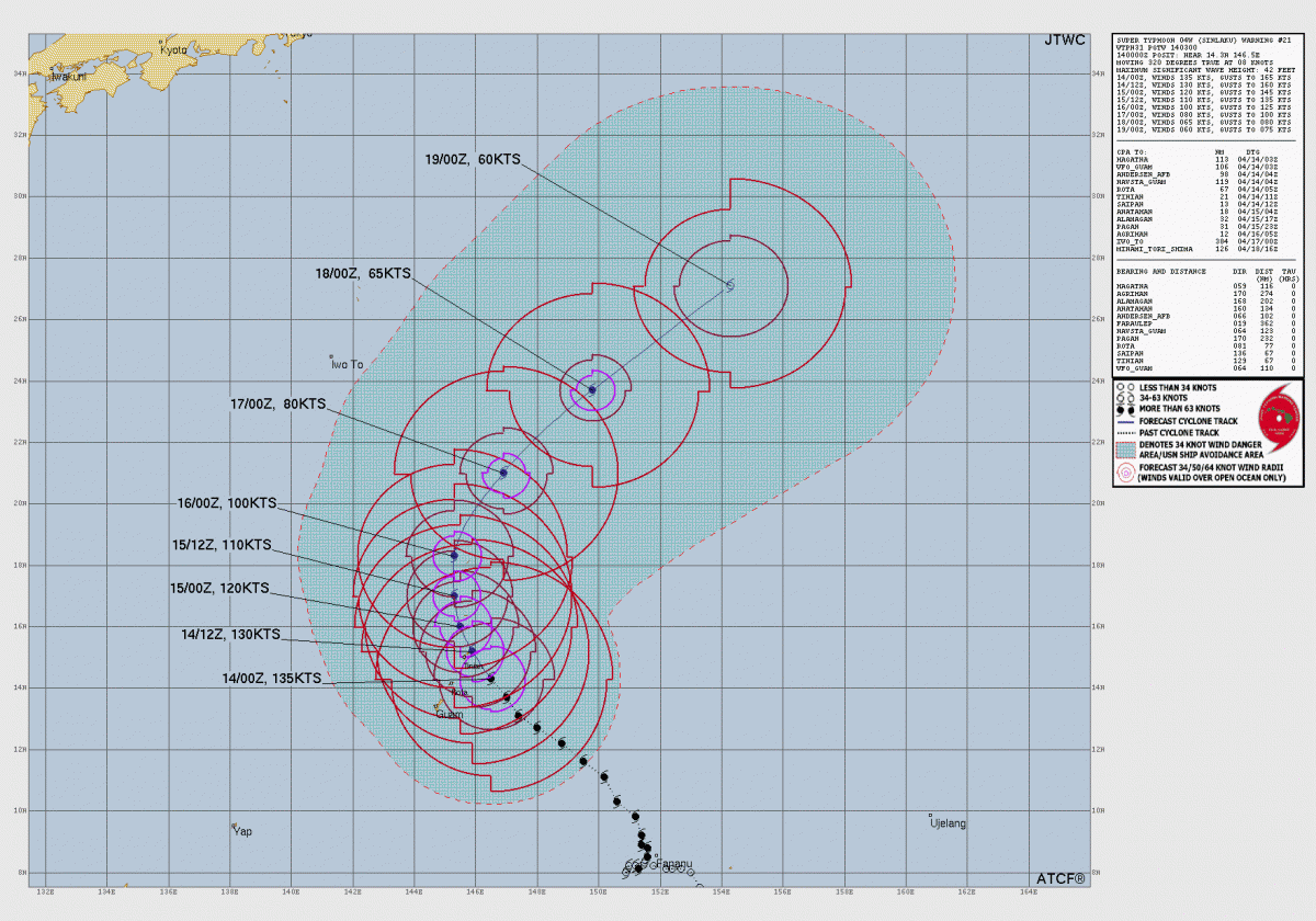 Ein tropisches Wirbelsturmsystem beeinflusst aktuell die Region um Guam im Nordpazifik.