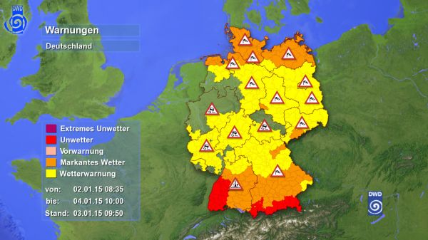 Die folgende Abbildung zeigt die Warnübersicht für Deutschland :