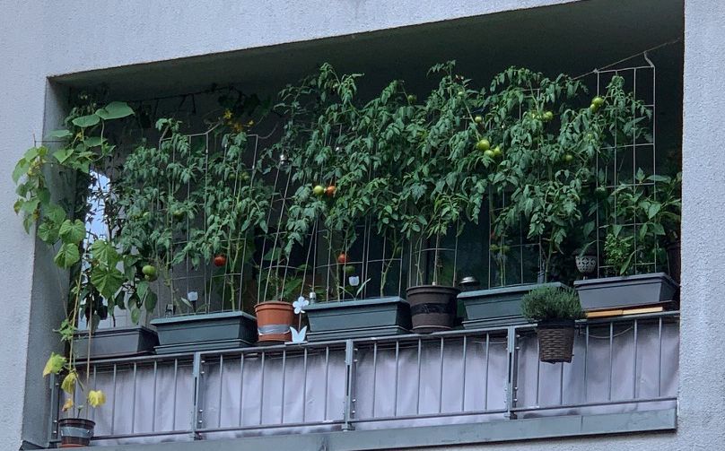 Dieser Balkon hinter einer Tomaten-Tarnwand ist der lebende Beweis dafür, dass Natur nicht nur schön, sondern auch höchst praktisch sein kann – zumindest, wenn man auf neugierige Blicke der Nachbarn verzichten möchte.