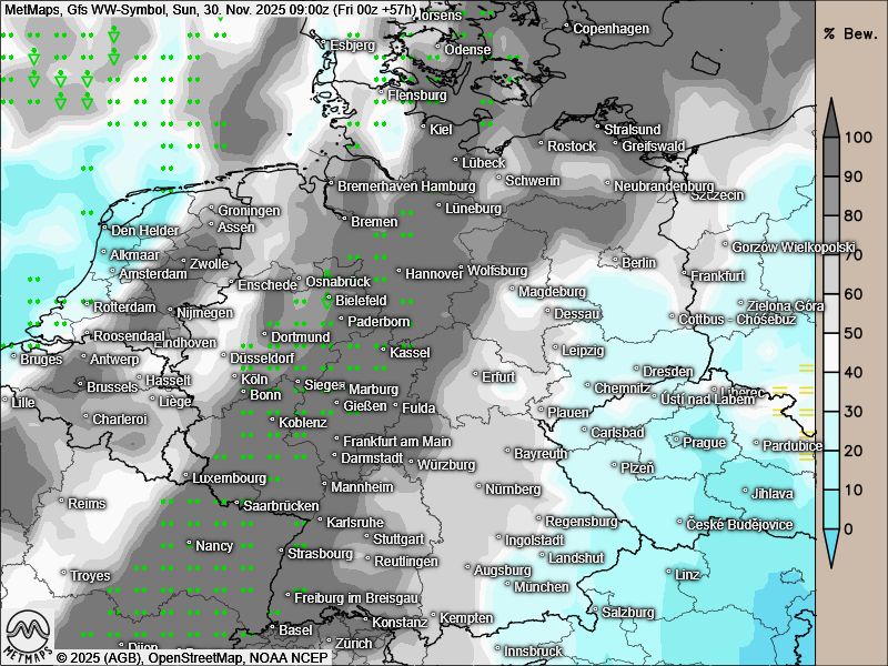Das erste Adventswochenende hält leider sehr wechselhaftes Wetter bereit: Bereits heute ziehen vielen Wolken und Regen über Deutschland bis in den Osten hinweg. Dabei wird deutlich mildere Luft herangeführt.