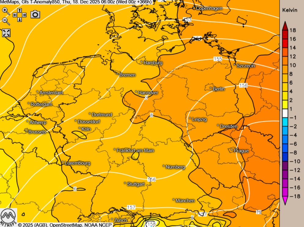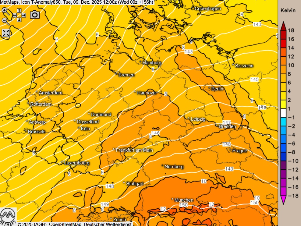 Die Temperaturabweichungen am 09.12. und 18.12. nach ICON und GFS: