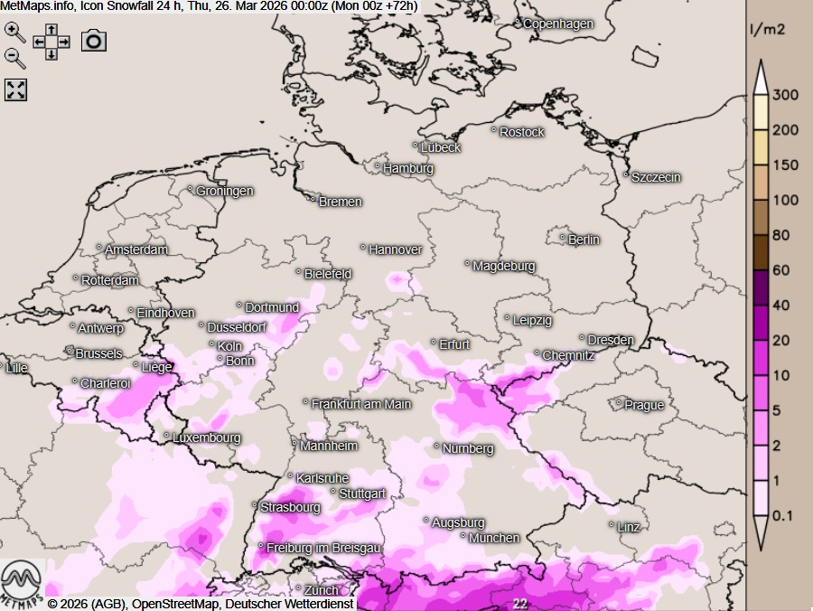 Am Donnerstag und Freitag bekommen die Temperaturen mit 2 bis 9 Grad in der Spitze dann nochmals einen kräftigen Dämpfer! Insbesondere in den Mittelgebirgen sowie in weiten Teilen Bayerns zeichnet sich zudem Schneefall ab.