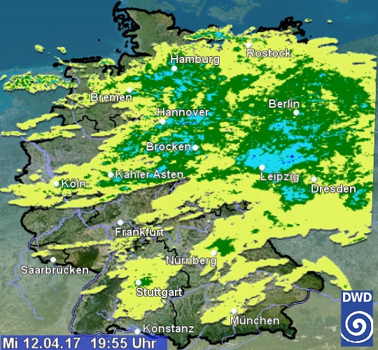 In Deutschland gibt es mehr als ein Dutzend Wetterradarstandorte. Je weiter ihr Wohnort von einem Radarstandort entfernt ist, desto höher geht der Radarstrahl in die Wolke. Es wird also der Niederschlag in höheren Luftschichten und nicht am Boden registriert. Normalerweise ist dies kein Problem. Schwierig wird die Regenvorhersage jedoch dann, wenn sich in nur wenigen Kilometern Höhe eine trockene Luftschicht befindet, die den Niederschlag beim weiteren Fallen verdunsten lässt und Signale auf dem Bildschirm angezeigt werden, obwohl es am Boden nicht regnet.