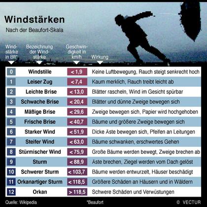 Ab wann spricht man von Sturm und wann von einem Orkan? Ein Blick auf das obere Ende der Beaufortskala.